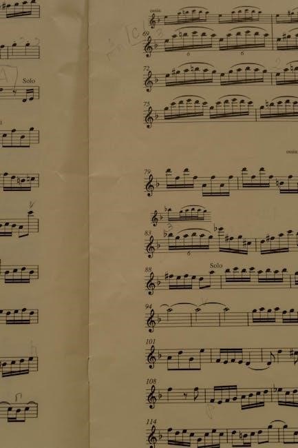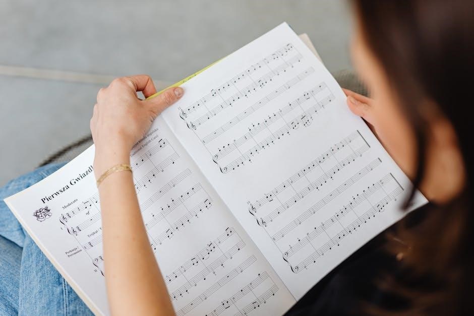 PDF study materials often visually demonstrate these markings within musical examples. Recognizing the difference between staccato and legato is essential for accurate performance and interpretation. Students should practice playing scales and simple melodies incorporating both articulations.